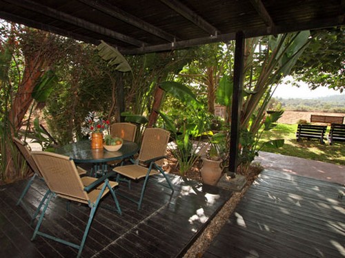לכל בקתה במתחם של בקתות שפרה, כניסה מבודדת ונפרדת עם חניה צמודה וחצר המוקף בצימחייה מטופחת ופינות ישיבה בין העצים.