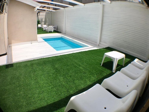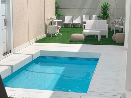 אורחי הסוויטות נהנים מחצר גדולה ומטופחת, במרכזה בריכה מרעננת תחת כיפת השמיים המוקפת פינות ישיבה, עמדת BBQ ומיטות שיזוף שכיף להתרווח בהן.