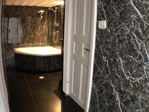 • חדר רחצה מטופח עם תחליבים, מגבות וג'קוזי פינתי
